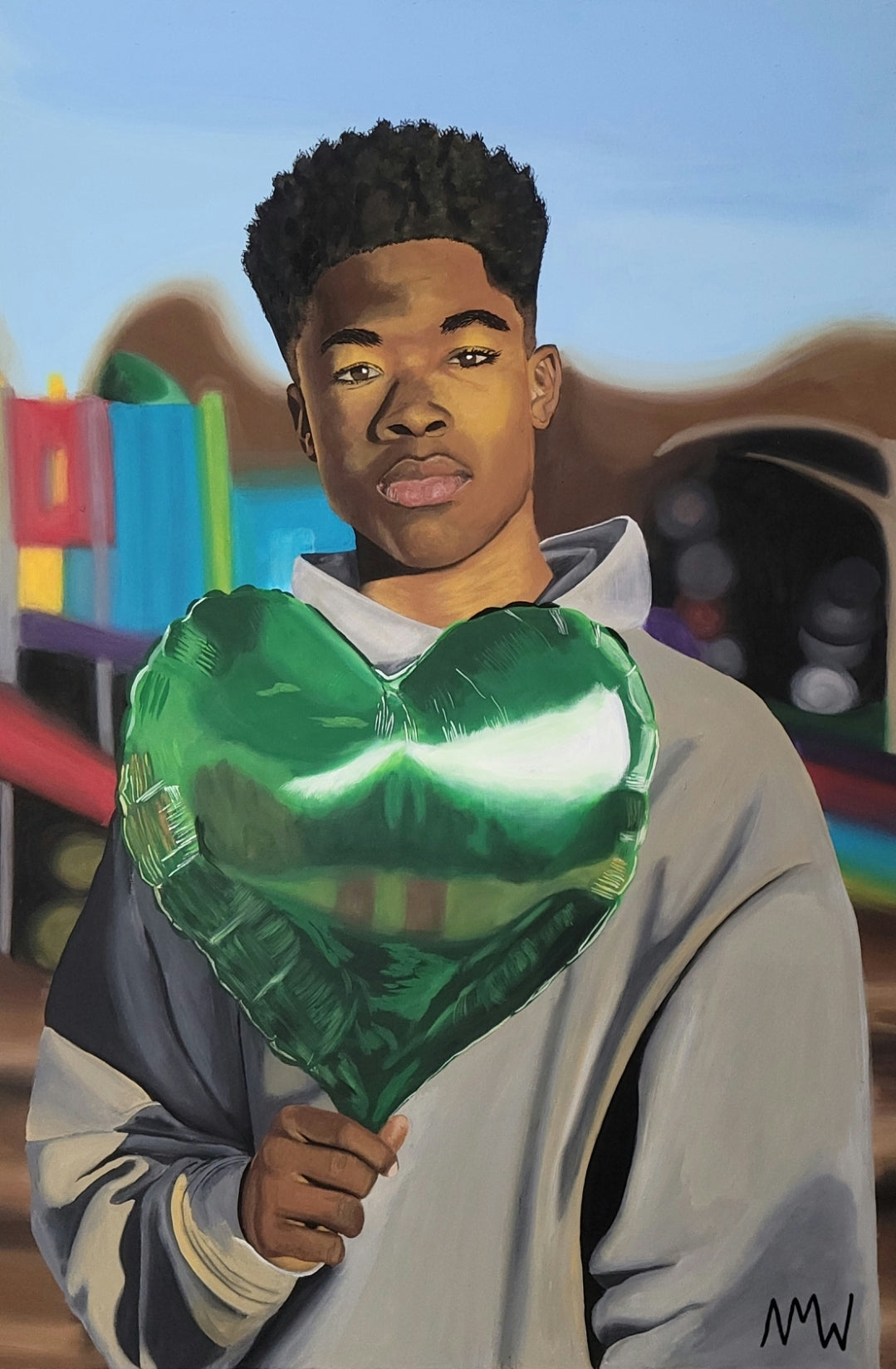'Boundless Hearts' is inspired by the quiet, unspoken emotions of childhood the moments of longing, introspection, and resilience that often go unnoticed. The balloons symbolize love, hope, and connection, yet the children's solemn expressions suggest a deeper, more complex relationship with these ideals. I aim to explore the tension between innocence and experience, joy and solitude, and the boundless emotional world that exists within each of us.